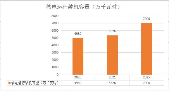 “十四五”规划和2035远景目标纲要》,至2025年,我国核电运行装机容量达到7000万千瓦。